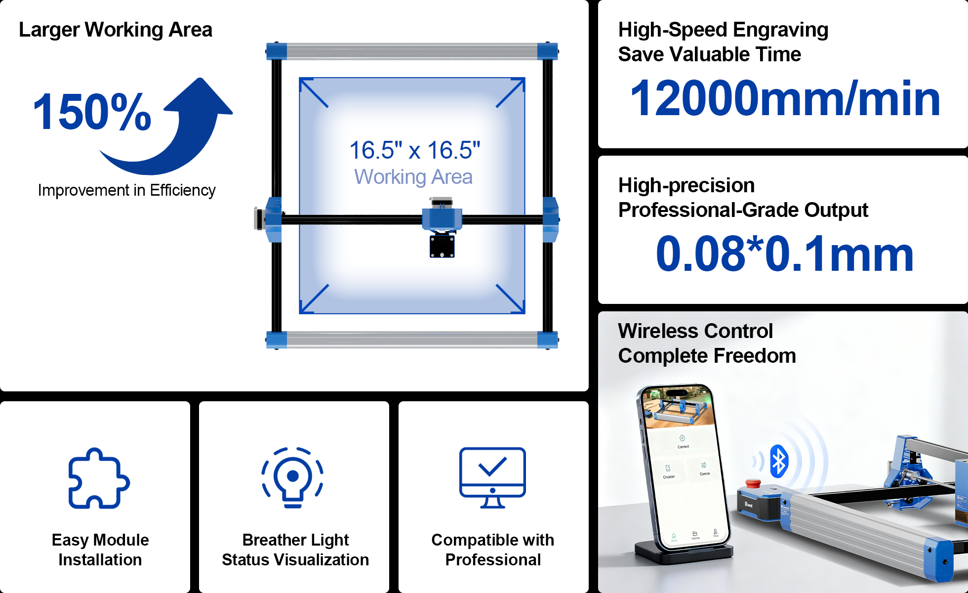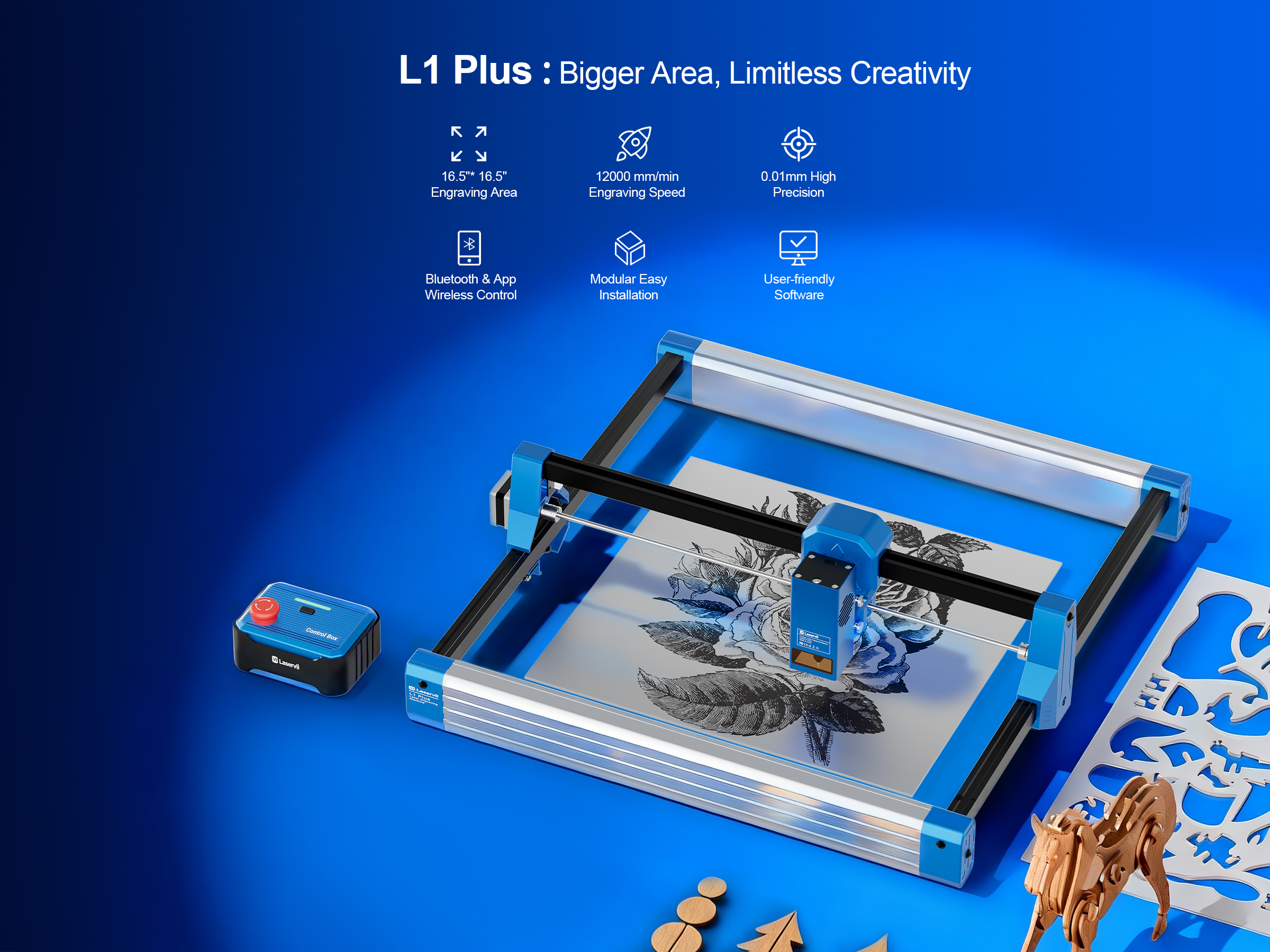 Ten produkt łączy zaawansowaną technologię z estetyką stylu życia, oferując większy obszar roboczy, wyższą precyzję grawerowania oraz silniejsze możliwości profesjonalne, które pomogą Ci zrealizować więcej kreatywnych pomysłów.